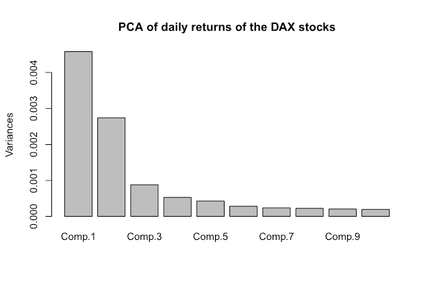 As to the diversification and the "optimal" asset allocation, in order to understand their limitations in detail you need some math knowledge (which we will cover in our numeracy lessons). But to put it briefly, the assets are nowadays strongly correlated (i.e. they tend to move in the same direction). Have a look at principle component chart of DAX stocks.